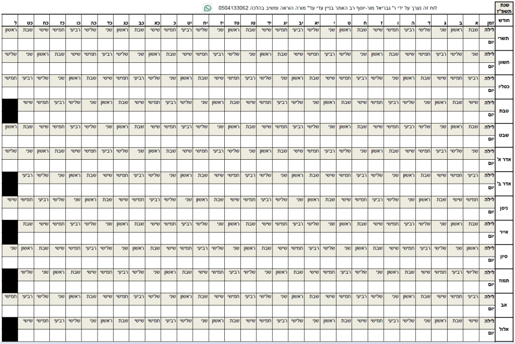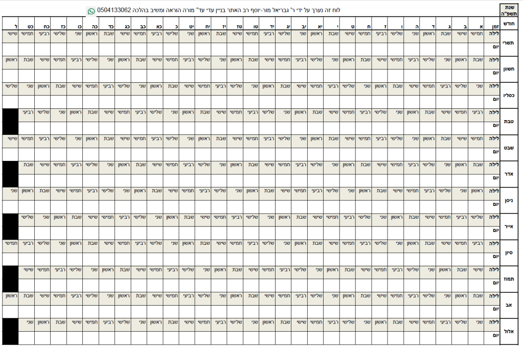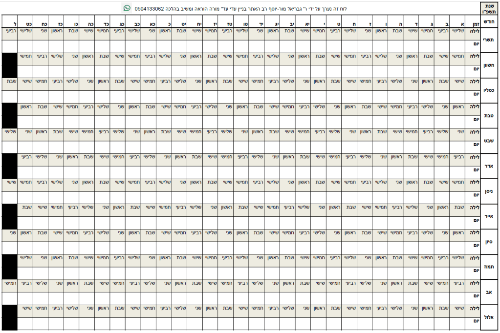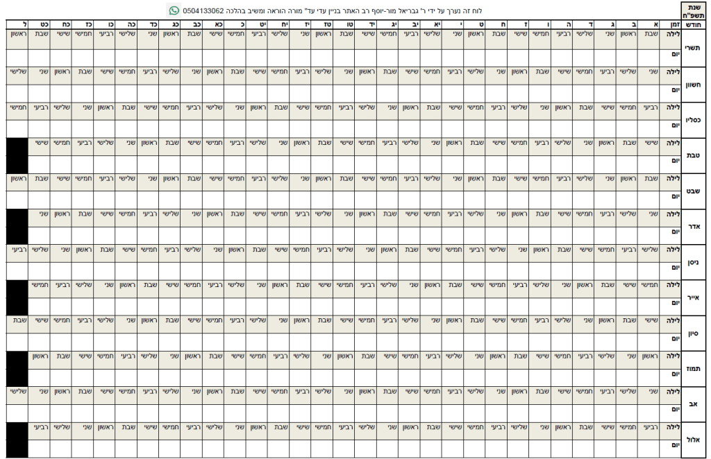 הלוחות נערכו על ידי הרב גבריאל מור יוסף באופן עצמאי, ניתן להפיצם.